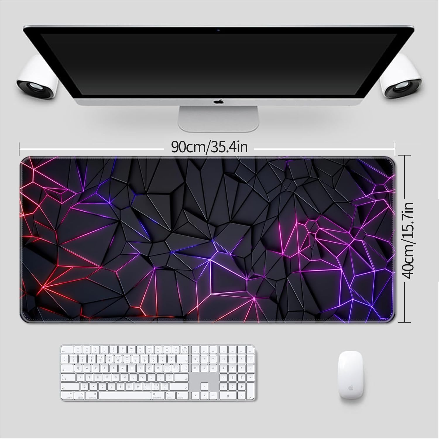 ماوس باد كبير للألعاب 900×400 مم (XXL) – سطح قماشي ناعم وقاعدة مطاطية مانعة للانزلاق، مناسب للكيبورد والماوس (تصميم نيون 3D)
